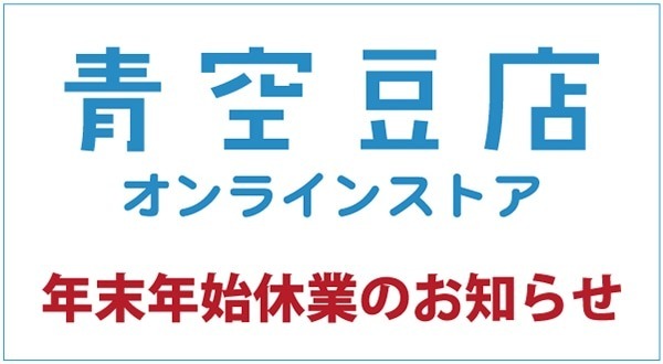 『青空豆店オンラインストア』は年末年始の下記の期間、商品の発送ならびにお問い合わせ業務をお休みとさせていただきます。